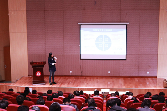 在講座上,劉老師通過列舉各高校實驗室安全事故,讓大家認識到實驗室安全的重要性。她還談及了實驗室內(nèi)可能遇到的主要危險、事故、相應的防范要點及應急手段等內(nèi)容。并發(fā)放了實驗室安全教育手冊。
