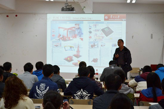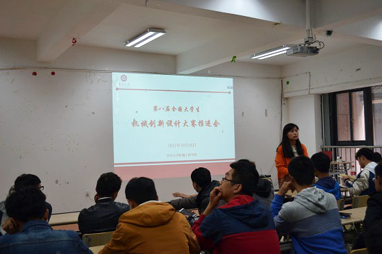 干老師首先向與會同學(xué)詳細(xì)講述了機創(chuàng)大賽的時間安排,她表示,今年11月份底我院將舉行院賽進(jìn)行方案評定,推選出優(yōu)秀的隊伍參加省賽,通過省賽后參加明年七月份舉行的國賽。她還強調(diào),院賽階段主要考察各參賽隊的參賽作品的設(shè)計背景、所運用的技術(shù)、立意是否切題和是否具有創(chuàng)新點等。