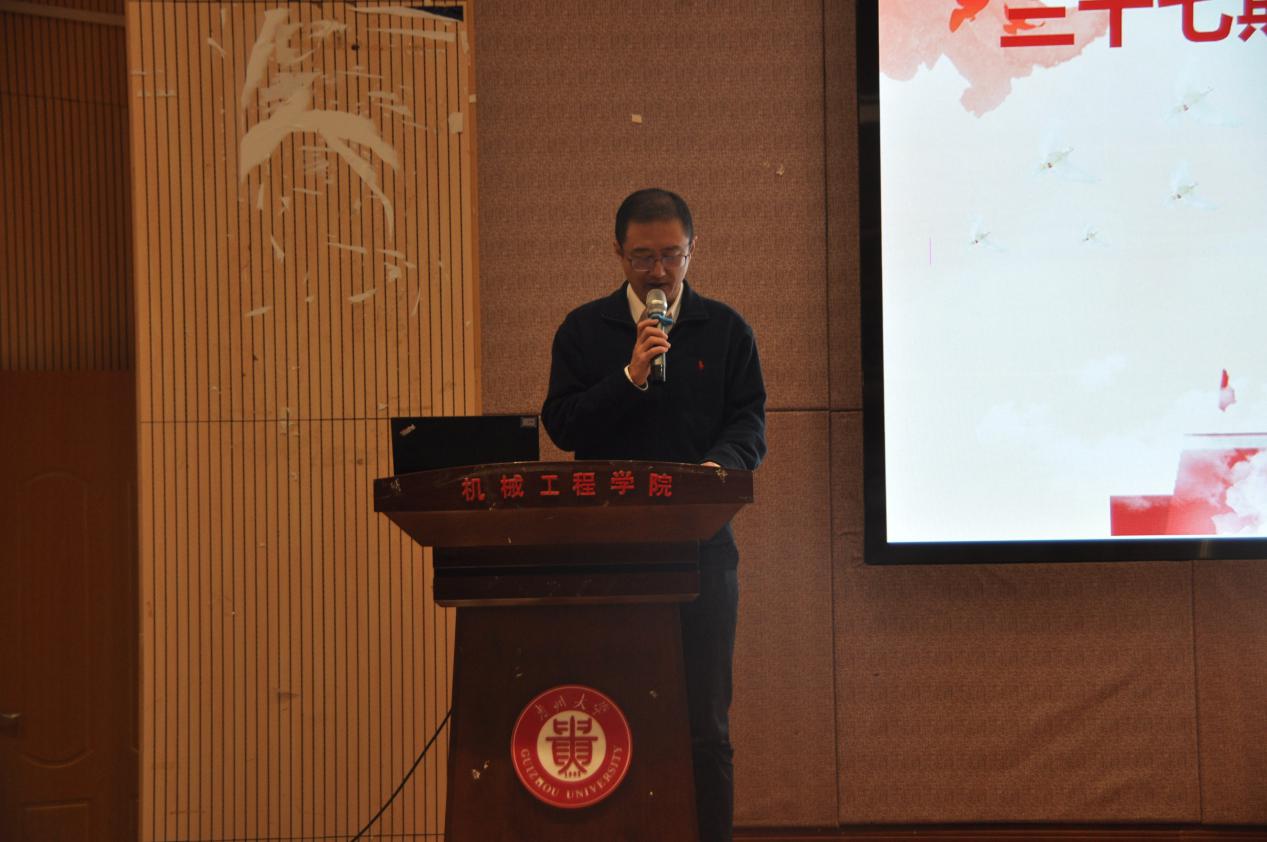 機械工程學院副書記廖燁宣讀《中共貴州大學委員會黨校優(yōu)秀學院、優(yōu)秀班干、優(yōu)秀班組評選辦法》,要求全體學員努力學習、刻苦鉆研、做好學習筆記。