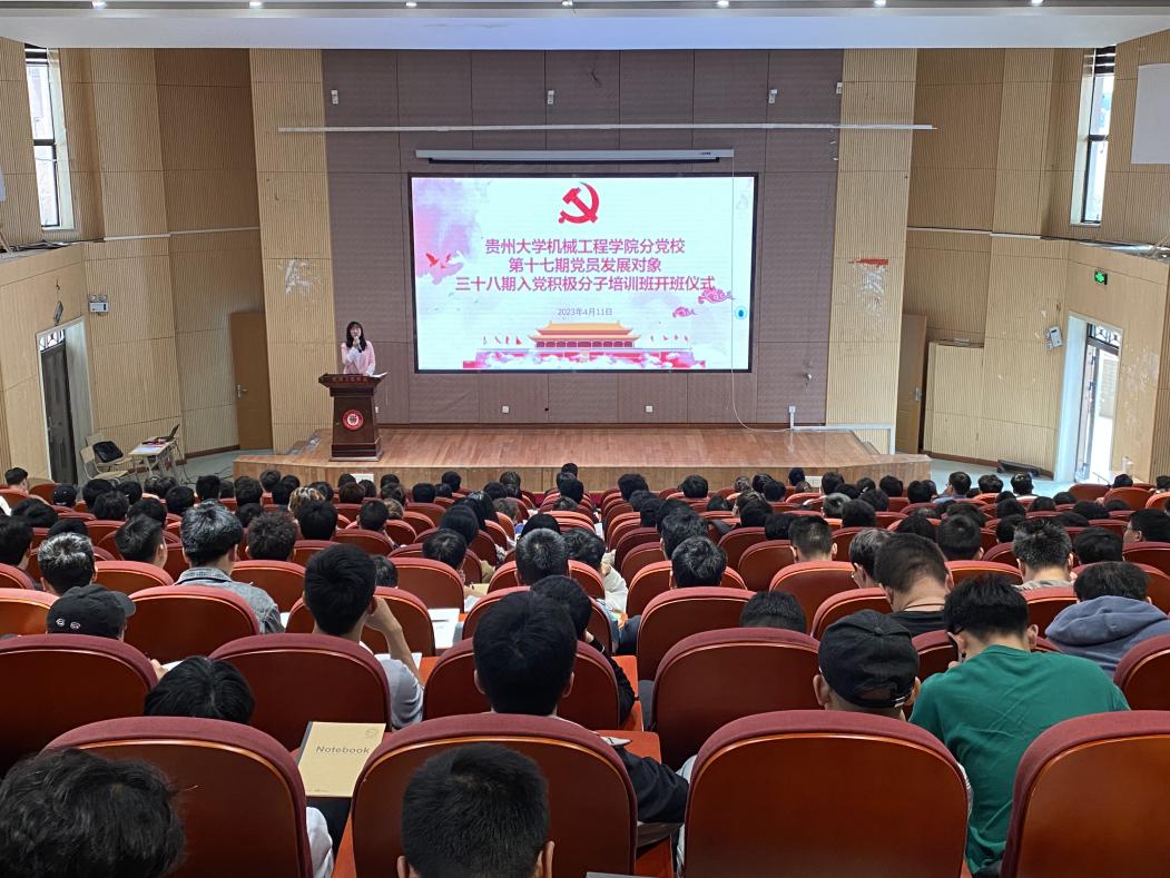 機(jī)械工程網(wǎng)站訊(記者 徐悅洋|攝影 吳雪、鄧子航)4月11日中午,貴州大學(xué)機(jī)械工程學(xué)院分黨校在機(jī)械樓圓形報(bào)告廳舉行了第十七期黨員發(fā)展對象、三十八期入黨積極分子培訓(xùn)班開班儀式。學(xué)院黨委書記滕召華、副書記廖燁出席會議,黨政辦、學(xué)生科、現(xiàn)代制造技術(shù)教育部重點(diǎn)實(shí)驗(yàn)室相關(guān)老師及全體發(fā)展對象和入黨積極分子參加會議,會議由學(xué)生科趙麗芳老師主持。
