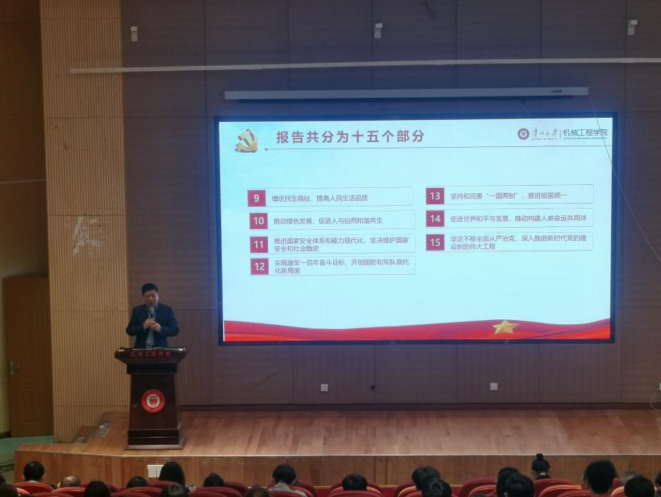 機械工程網(wǎng)站訊(記者朱漫華|攝影高鑫 路耀凌)為深入學習宣傳貫徹黨的二十大精神,教育引導學院黨員師生把思想和行動統(tǒng)一到黨的二十大精神上來,2023年4月14日中午,機械工程學院黨委書記滕召華在機械樓圓形報告廳為全院黨員師生作黨的二十大精神宣講。學院院長趙津、黨委副書記廖燁出席會議,學院教職工黨員和學生黨員參加宣講會。