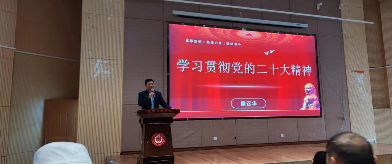 黨委書記滕召華對黨的二十大精神進行了詳細解讀,強調(diào)師生黨員要深入學習、深刻領悟黨的二十大精神,在學深悟透中切實把思想和行動統(tǒng)一到黨的二十大決策部署上來。