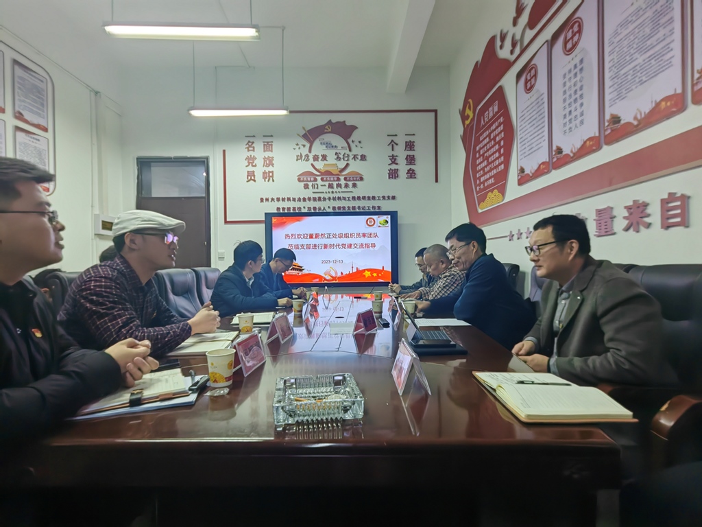 12月13日,貴州大學(xué)黨委正處級組織員董蔚然攜我支部支委成員與材料與冶金學(xué)院高分子材料與工程教研室教工黨支部開展黨建交流。材料與冶金學(xué)院黨委書記劉劍、正處級組織員熊玉竹以及高分子材料與工程教研室教工黨支部全體黨員參加活動?;顒佑?/span>全國高校“雙帶頭人”教師黨支部書記工作室負責(zé)人、高分子材料與工程教研室教工黨支部書記謝海波主持。