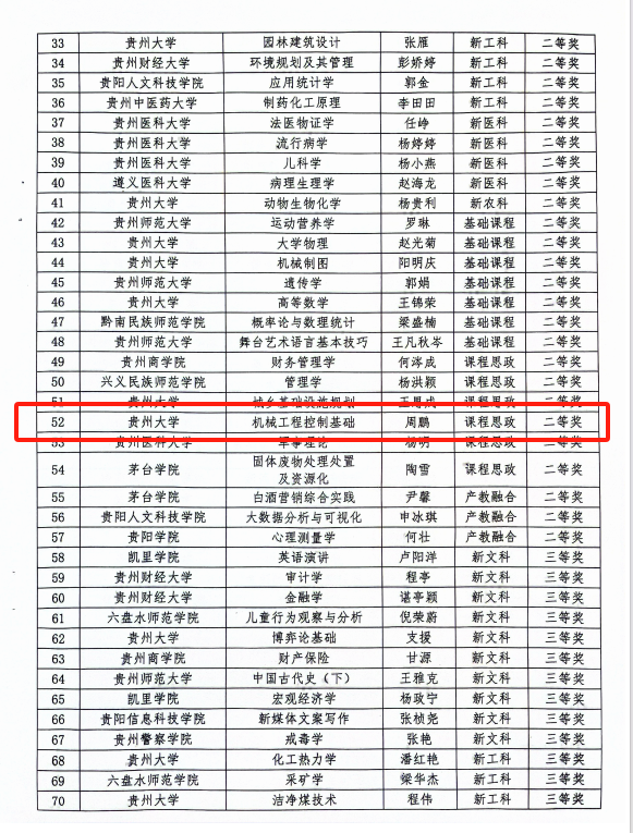 2024年4月,第四屆貴州省高校教師教學(xué)創(chuàng)新大賽在貴州大學(xué)圓滿舉行,我支部書記周鵬同志喜獲課程思政組省級二等獎。高校教師教學(xué)創(chuàng)新大賽是高校教師教育的重要教學(xué)賽事,是以賽促教的重要平臺。今年比賽中,機(jī)械工程學(xué)院張富貴老師喜獲省級一等獎、陽明慶和周鵬老師喜獲省級二等獎,實現(xiàn)了機(jī)械工程學(xué)院在該項教師教學(xué)競賽中省級獲獎零的突破。