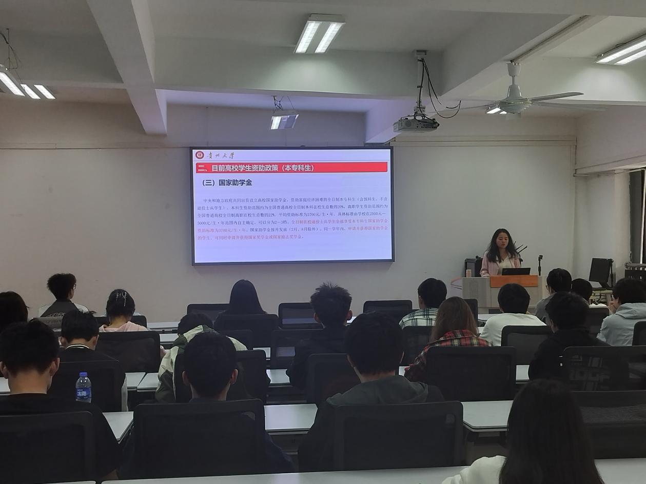 會上,輔導(dǎo)員楊朵老師系統(tǒng)梳理了國家及高校資助政策體系,詳細講解了獎助學(xué)金評定標(biāo)準(zhǔn)、助學(xué)金申請流程、國家助學(xué)貸款政策及臨時困難救助機制等核心內(nèi)容,結(jié)合實際案例,讓晦澀的政策條款變得通俗易懂。隨后,輔導(dǎo)員進一步介紹學(xué)校特色資助政策,強調(diào)資助工作的規(guī)范性和嚴謹性,要求生活委員切實履行職責(zé),既要當(dāng)好政策的“宣傳員”,也要做好困難同學(xué)的“貼心人”。