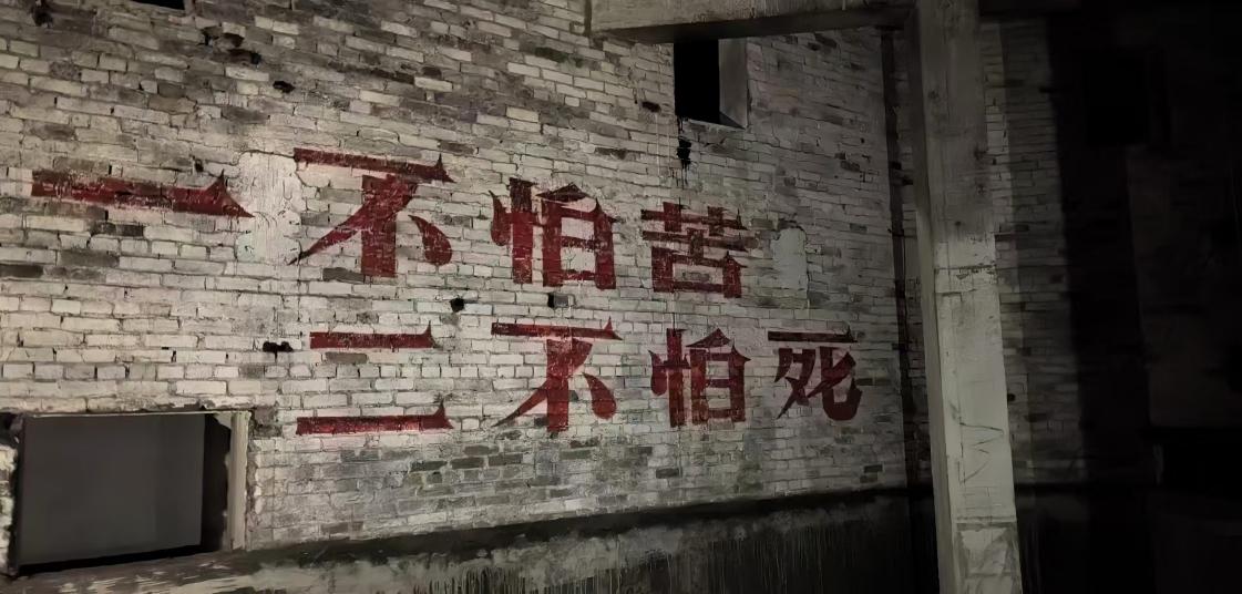 而今處于新時(shí)代的我們,已不見(jiàn)先輩們洞中燈火下?lián)]汗如雨、艱辛勞作的身影,但洞壁上一行行斑駁卻遒勁的紅色標(biāo)語(yǔ),卻依舊如炬火般灼亮,似號(hào)角般回響,在歲月深處默默訴說(shuō)著那段滾燙的過(guò)往。