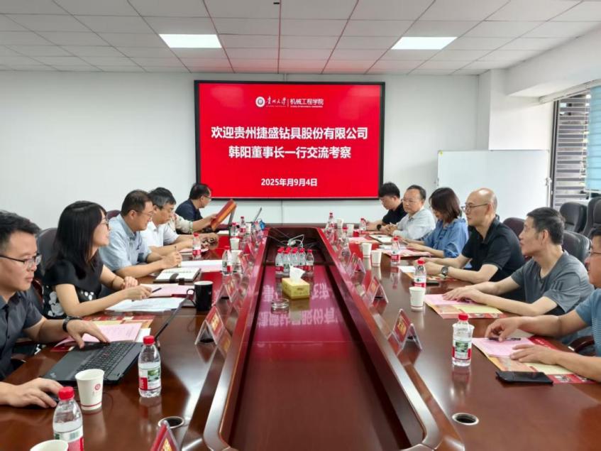2025年9月4日上午,貴州捷盛鉆具股份有限公司與貴州大學(xué)機(jī)械工程學(xué)院校企合作簽約儀式在學(xué)院518會(huì)議室舉行。貴州捷盛鉆具股份有限公司董事長韓陽、副總經(jīng)理艾澤鐘、技術(shù)顧問熊雨峰、機(jī)械主任工程師汪國軒、助理機(jī)械工程師陶光勛、項(xiàng)目專員葉偉琴及貴州大學(xué)機(jī)械工程學(xué)院領(lǐng)導(dǎo)班子、系(所)相關(guān)教師代表參加了簽約儀式。這次合作是繼2022年貴州捷盛鉆具股份有限公司在我院捐贈(zèng)設(shè)立“知魚”獎(jiǎng)學(xué)金后的深化合作,標(biāo)志著雙方在產(chǎn)教融合、協(xié)同育人方面邁出了新的步伐。