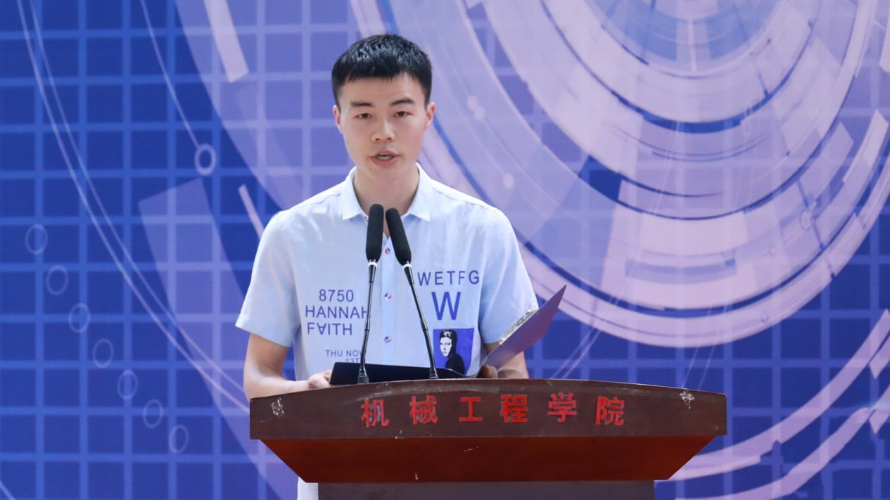 貴州大學(xué)機(jī)械工程學(xué)院機(jī)械設(shè)計(jì)制造及其自動(dòng)化專(zhuān)業(yè)羅一波同學(xué)代表參賽隊(duì)伍發(fā)言。