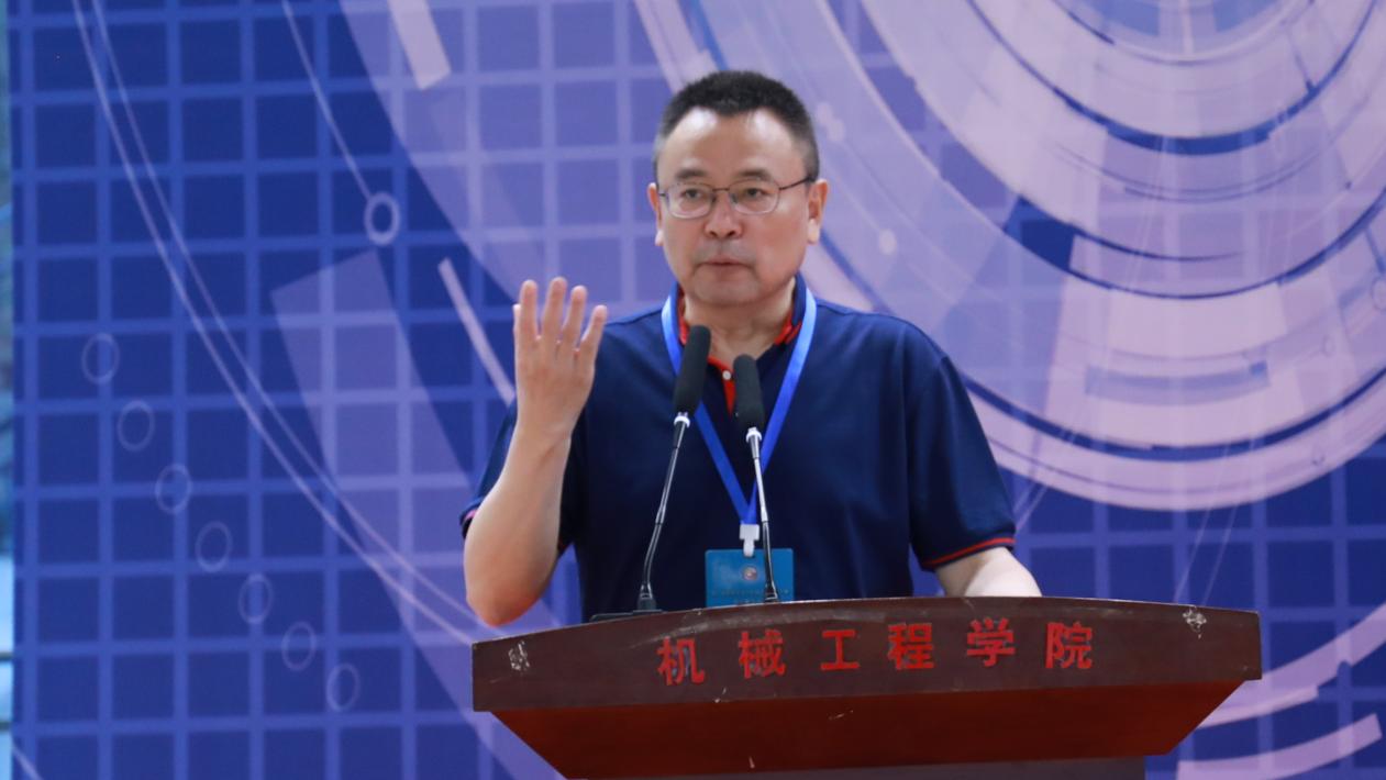 機(jī)械工程學(xué)院院長(zhǎng)趙津發(fā)言,他代表承辦方對(duì)全國(guó)大學(xué)生機(jī)械創(chuàng)新設(shè)計(jì)大賽組委會(huì)秘書(shū)長(zhǎng)王晶及學(xué)校相關(guān)職能部門(mén)負(fù)責(zé)人親臨指導(dǎo)表示衷心感謝,祝賀大賽圓滿成功。