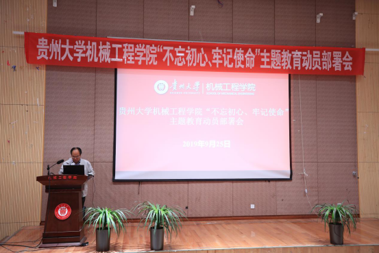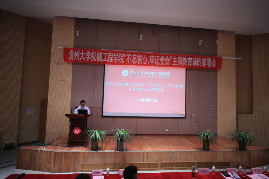 2019年9月25日,貴州大學(xué)機械工程學(xué)院黨委“不忘初心,牢記使命”主題教育部署會在機械樓圓形報告順利召開。校巡回指導(dǎo)小組四組組長許道云、成員李臣宇以及學(xué)院及現(xiàn)代制造重點實驗室在家處級領(lǐng)導(dǎo)干部、院黨委委員、各黨總支、黨支部委員、全體師生黨員參加了此次會議。會議由學(xué)院黨委院長李少波主持。