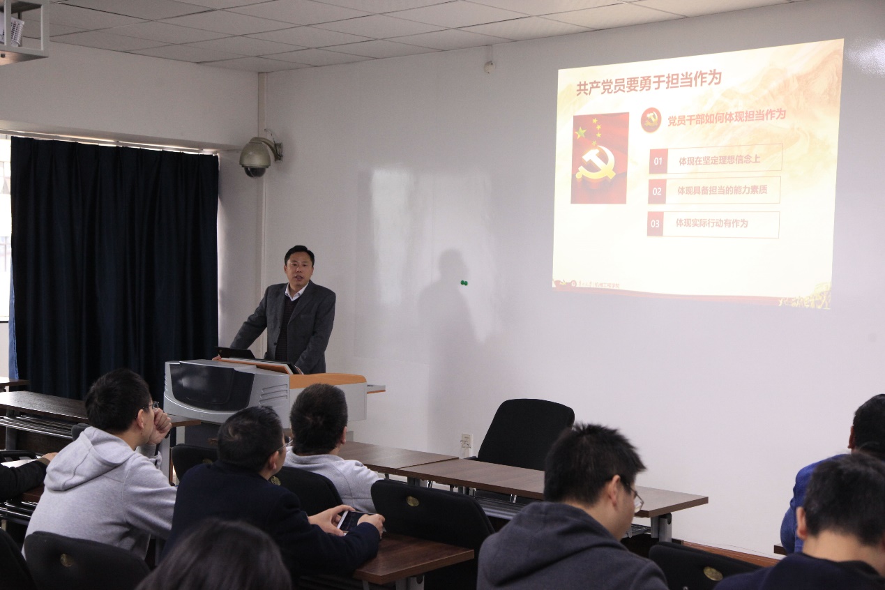 李少波院長從新時(shí)代擔(dān)當(dāng)作為的內(nèi)涵、新時(shí)代怎樣擔(dān)當(dāng)作為、機(jī)械工程學(xué)科現(xiàn)狀與問題、機(jī)械工程學(xué)科怎樣擔(dān)當(dāng)作為四個(gè)方面闡述了自己對習(xí)近平新時(shí)代中國特色社會(huì)主義思想獨(dú)特理論品格的深刻理解,對中國共產(chǎn)黨人和新時(shí)代教育工作者初心使命的深刻感悟,對學(xué)院事業(yè)發(fā)展存在問題與差距的清醒認(rèn)識(shí),以及履行職責(zé)使命,帶領(lǐng)廣大黨員干部努力開創(chuàng)學(xué)院事業(yè)發(fā)展新格局。