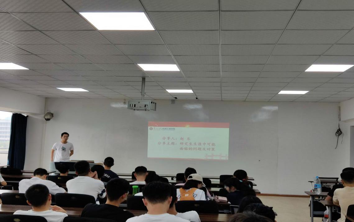 機(jī)械工程網(wǎng)站訊(記者 袁 銀|攝影 陳世婕)光陰荏苒,歲月如梭,又是一年畢業(yè)季。2021年6月21日,機(jī)械工程學(xué)院邀請(qǐng)了胡小龍、趙樂、李中益三位畢業(yè)生在機(jī)械樓416教室分別從考博、科研、就業(yè)三個(gè)方面開展了畢業(yè)生分享會(huì),全體研究生參加會(huì)議。