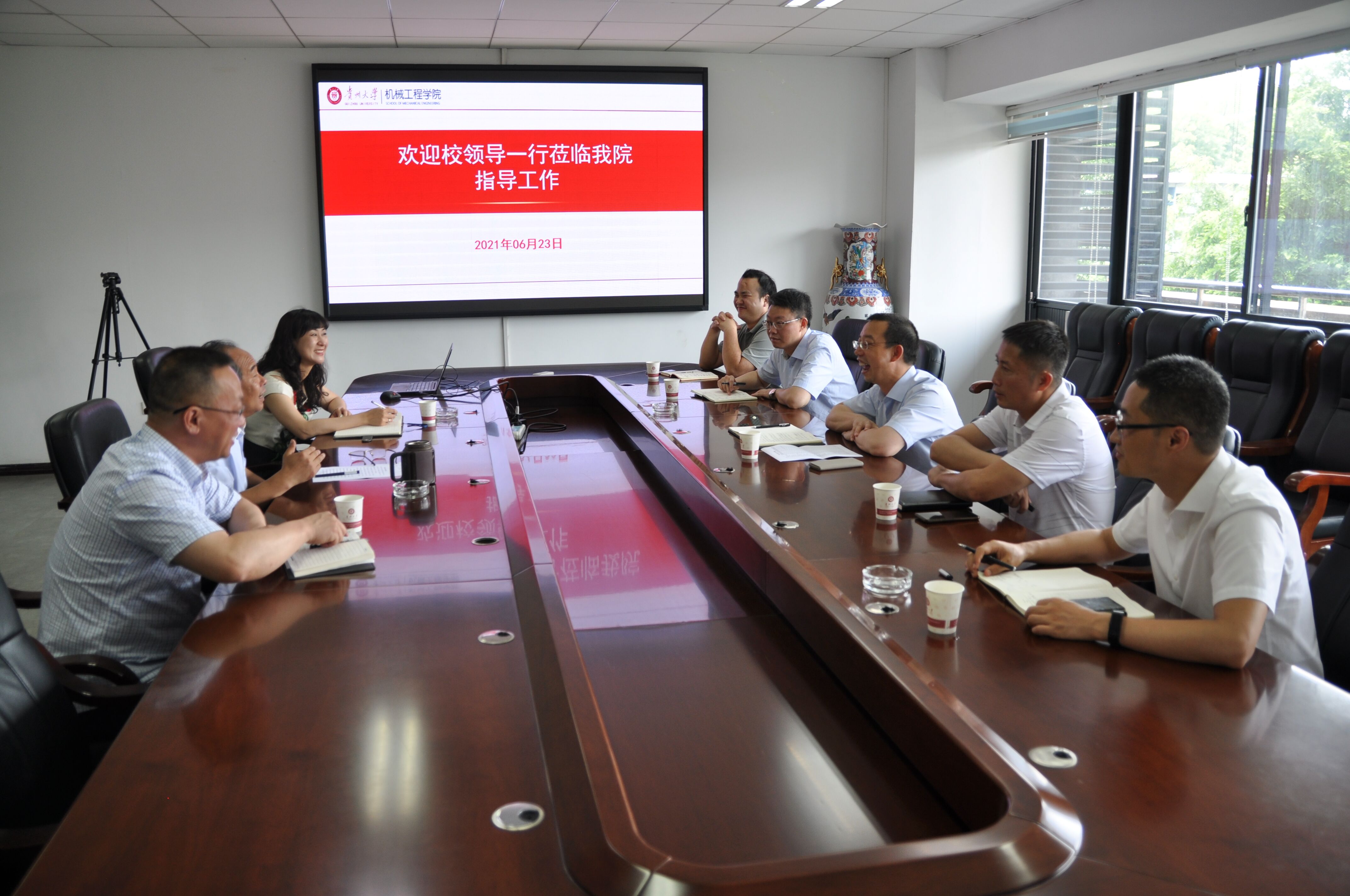 機械工程學院網(wǎng)站訊(記者 鄒醒佳)6月23日下午,貴州大學副校長鄧朝勇、招生就業(yè)處正處級組織員王忠於、教務(wù)處副處長向嵩(主持工作)、黨委學生工作部副部長張小彬(主持工作)及相關(guān)人員赴機械工程學院調(diào)研就學院博學計劃推進情況及就業(yè)工作進行指導。機械學院黨委書記安明剛、副書記廖燁、副院長何鋒及相關(guān)教師代表參加座談會。