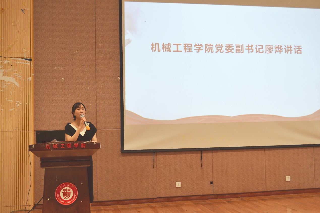機(jī)械工程網(wǎng)站訊(記者 張江平|攝影 王若男)為扎實(shí)做好機(jī)械工程學(xué)院2021屆畢業(yè)生離校有關(guān)工作,加強(qiáng)對(duì)畢業(yè)生黨員的教育管理,機(jī)械工程學(xué)院于6月24日在機(jī)械樓圓形報(bào)告廳召開畢業(yè)生離校暨畢業(yè)生黨員教育管理大會(huì)。學(xué)院黨委副書記廖燁出席會(huì)議,學(xué)生科岑曉潔、何琳煜、王嘉斌老師及研究生科趙麗芳老師和全體畢業(yè)生參加會(huì)議。會(huì)議由趙麗芳主持。