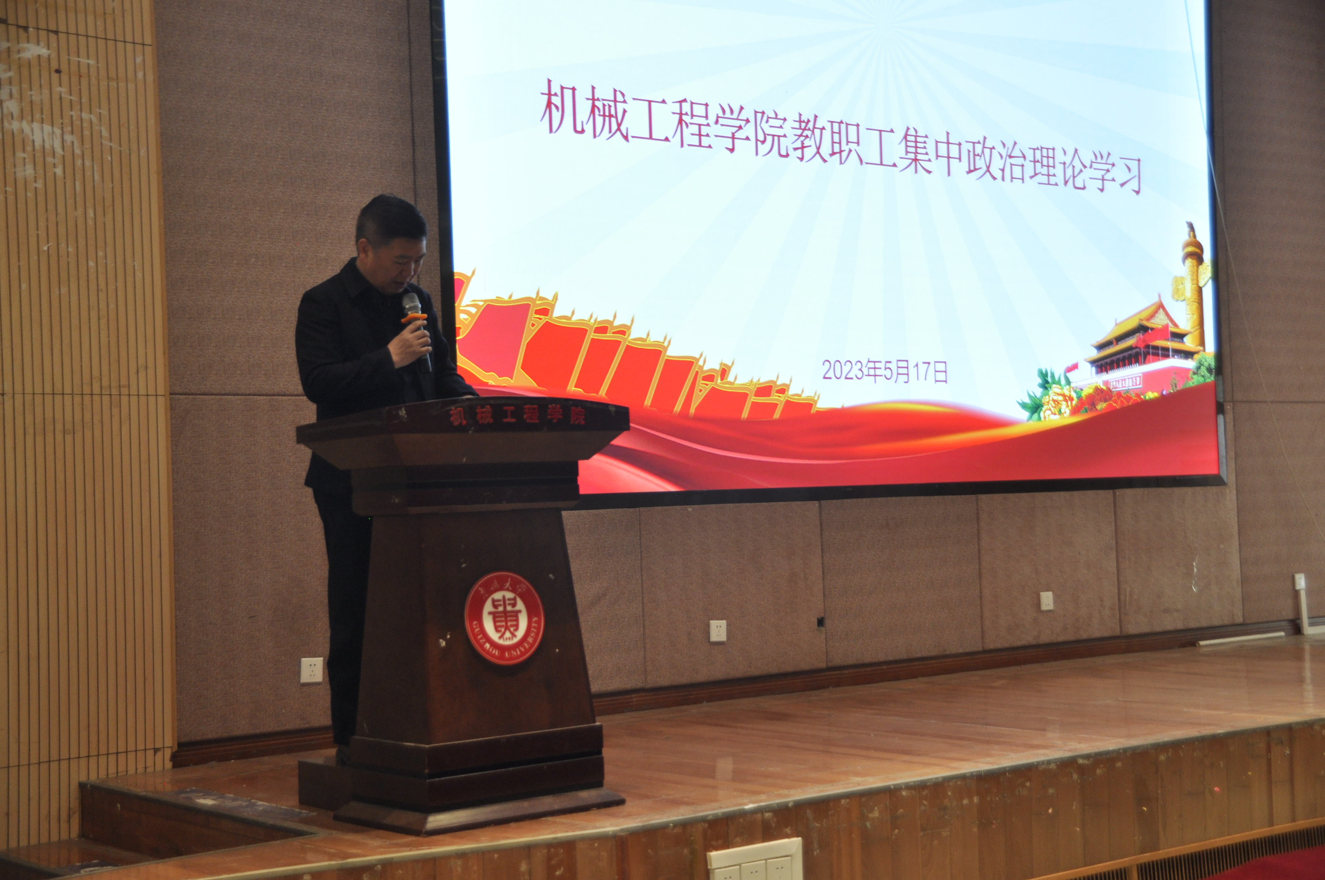 機(jī)械工程網(wǎng)站訊(記者李艾龍|攝影潘成雪)2023年5月17日,機(jī)械工程學(xué)院在機(jī)械樓圓形報(bào)告廳開(kāi)展教職工政治理論學(xué)習(xí),機(jī)械工程學(xué)院黨委書(shū)記滕召華、院長(zhǎng)趙津、正處級(jí)組織員董蔚然、黨委副書(shū)記廖燁、副院長(zhǎng)李家春出席會(huì)議,會(huì)議由黨委書(shū)記滕召華主持。