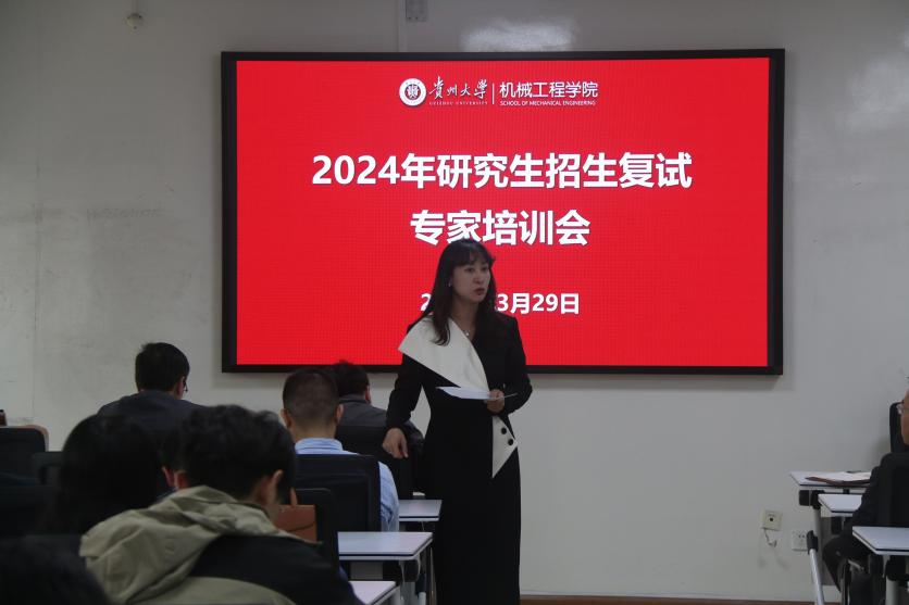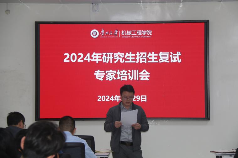 為保證研究生復(fù)試工作有序、規(guī)范,2024年3月29日中午13點(diǎn),機(jī)械工程學(xué)院在機(jī)械樓416教室召開(kāi)了2024年研究生復(fù)試專(zhuān)家培訓(xùn)會(huì)。會(huì)議由唐正強(qiáng)副院長(zhǎng)主持,學(xué)院班子成員、研究生科、復(fù)試專(zhuān)家等相關(guān)人員等共計(jì)59人參會(huì)。