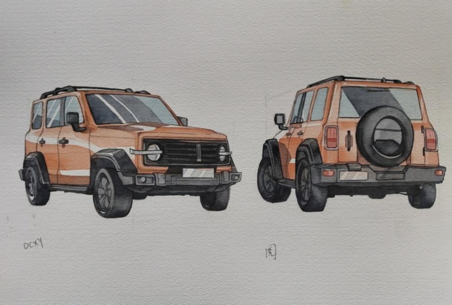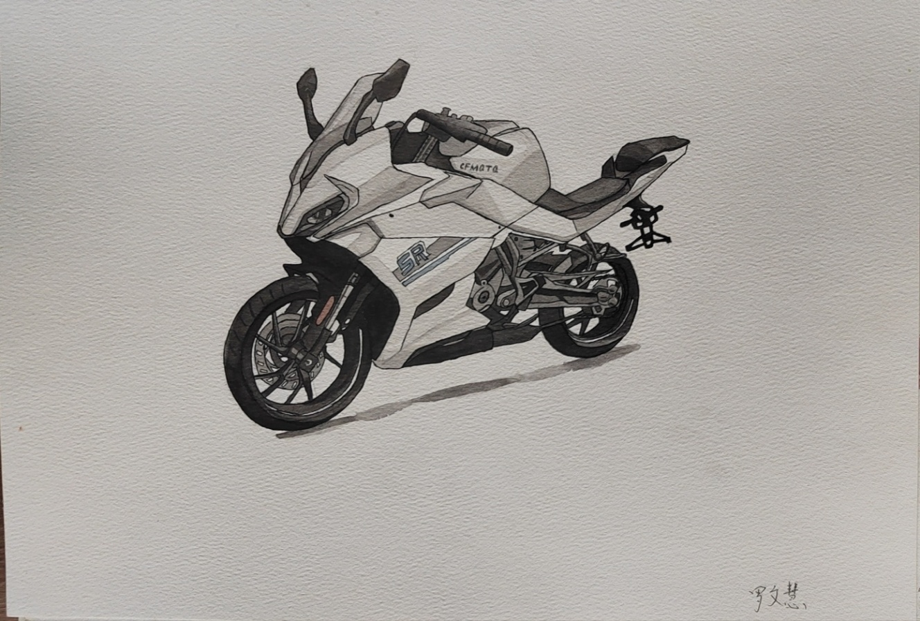 這幅水彩手繪摩托車畫作,巧妙地融合了水彩的輕盈與摩托車的力量感。畫中是一輛獨具特色的摩托車,其流暢的線條和鮮明的色彩使得整個畫面充滿動感,其金屬質(zhì)感通過水彩的透明度和層次感得到了較好的表現(xiàn)。