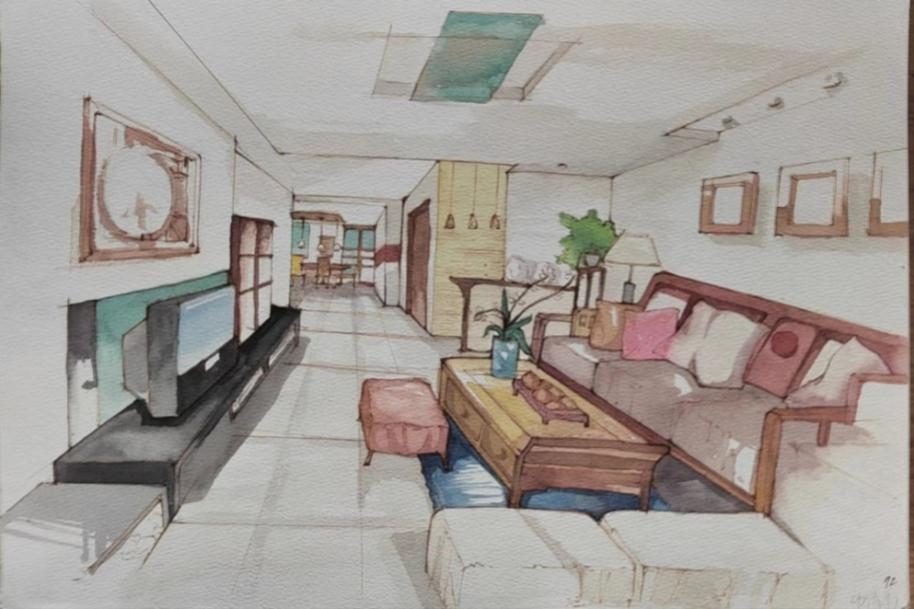 室內(nèi)設(shè)計體現(xiàn)了現(xiàn)代的風格和設(shè)計理念,可以看到舒適的沙發(fā)、時尚的家具和裝飾品,以及柔和的燈光。整個畫面散發(fā)著溫馨和諧的氛圍,給人帶來愉悅和舒適的感覺。通過水彩的絢麗色彩和輕盈的筆觸,作品將觀眾帶入一個優(yōu)雅而舒適的室內(nèi)空間。