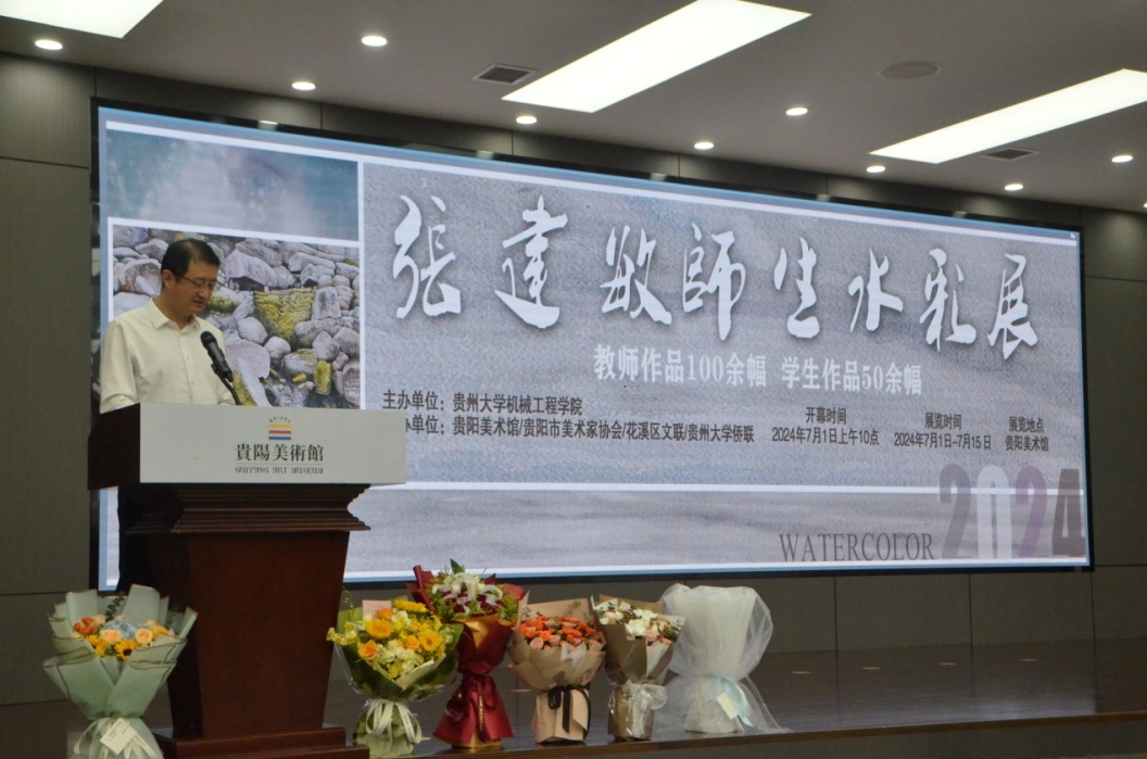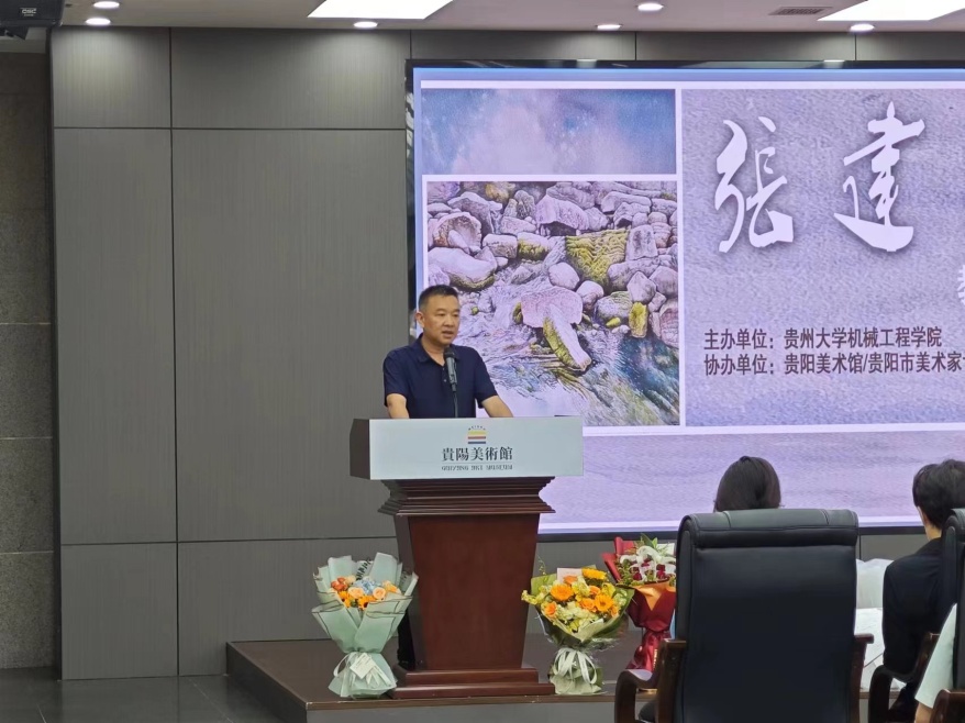 貴州大學機械工程學院院長趙津致辭中介紹了畫展情況、貴州大學機械工程學院和工業(yè)設(shè)計專業(yè)的情況以及張建敏老師的藝術(shù)成就。認為此次畫展是對工程類專業(yè)學生開展美育的一個積極實踐。