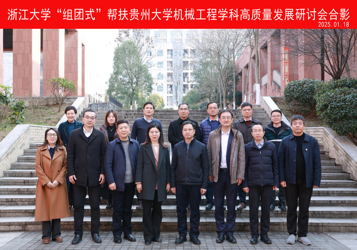 2025年1月18日,浙江大學(xué)機(jī)械工程學(xué)院項(xiàng)淑芳書(shū)記、徐兵常務(wù)副院長(zhǎng)、劉振宇副院長(zhǎng)、王柏村副院長(zhǎng)一行到貴州大學(xué)機(jī)械工程學(xué)院開(kāi)展“組團(tuán)式”幫扶貴州大學(xué)機(jī)械工程學(xué)科高質(zhì)量發(fā)展交流研討,會(huì)議旨在加強(qiáng)“省校合作、校校合作”,創(chuàng)新探索“組團(tuán)式”幫扶學(xué)科新模式,助力貴州大學(xué)機(jī)械工程學(xué)科水平提質(zhì)升級(jí)。貴州大學(xué)黨委常委、副校長(zhǎng)李飛,貴州大學(xué)黨委組織部部長(zhǎng)羅衛(wèi)剛,機(jī)械工程學(xué)院黨委書(shū)記滕召華,院長(zhǎng)趙津,正處級(jí)組織員董蔚然,副院長(zhǎng)、現(xiàn)代制造教育部重點(diǎn)實(shí)驗(yàn)室常務(wù)副主任黃海松,副院長(zhǎng)李家春,副院長(zhǎng)唐正強(qiáng),各系室主任,各學(xué)位點(diǎn)負(fù)責(zé)人出席會(huì)議,浙江大學(xué)機(jī)械工程學(xué)院、貴州大學(xué)公共大數(shù)據(jù)國(guó)家重點(diǎn)實(shí)驗(yàn)室馮毅雄教授主持會(huì)議。
